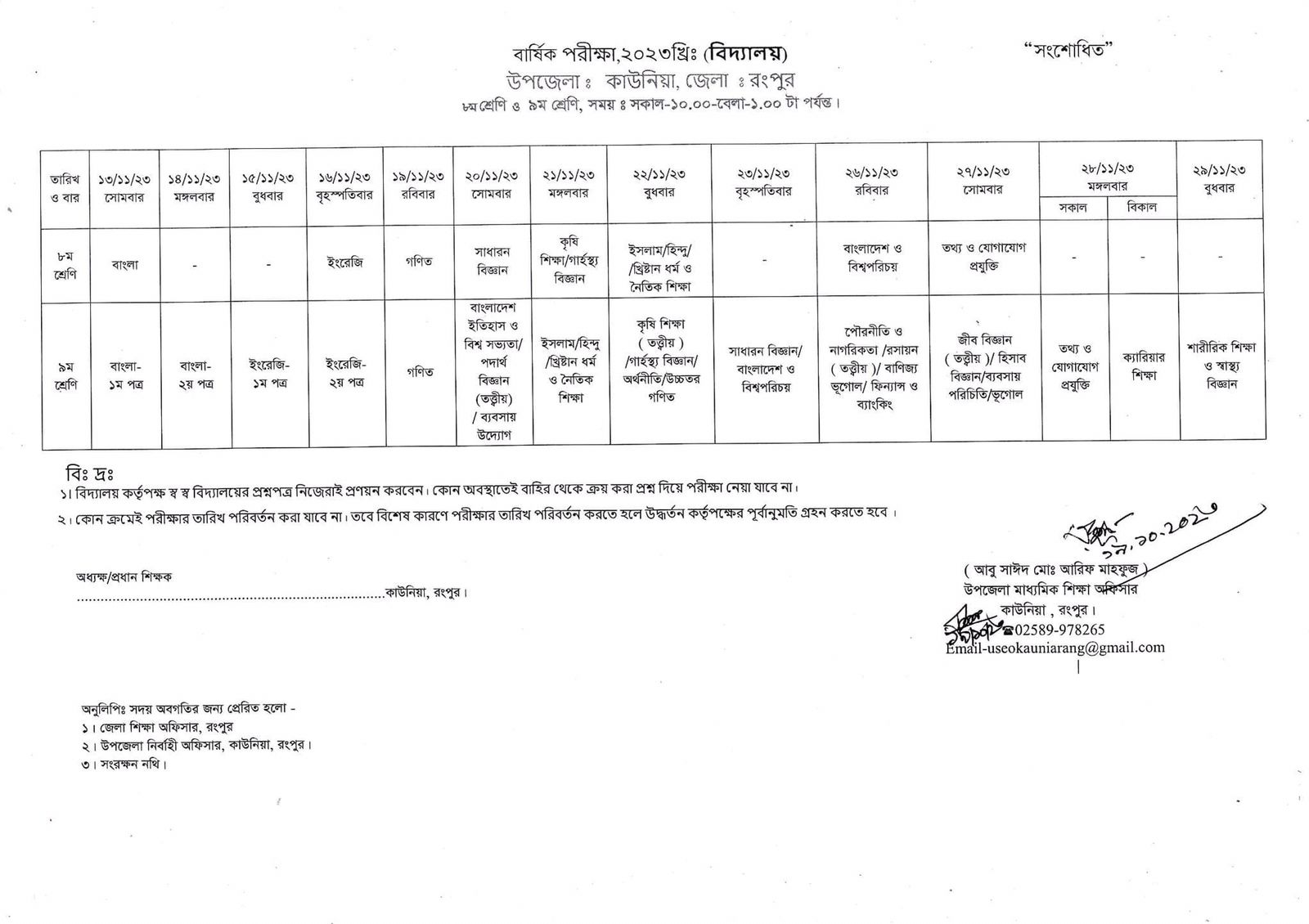 ৮ম ও ৯ম শ্রেণীর বার্ষিক পরীক্ষার রুটিন